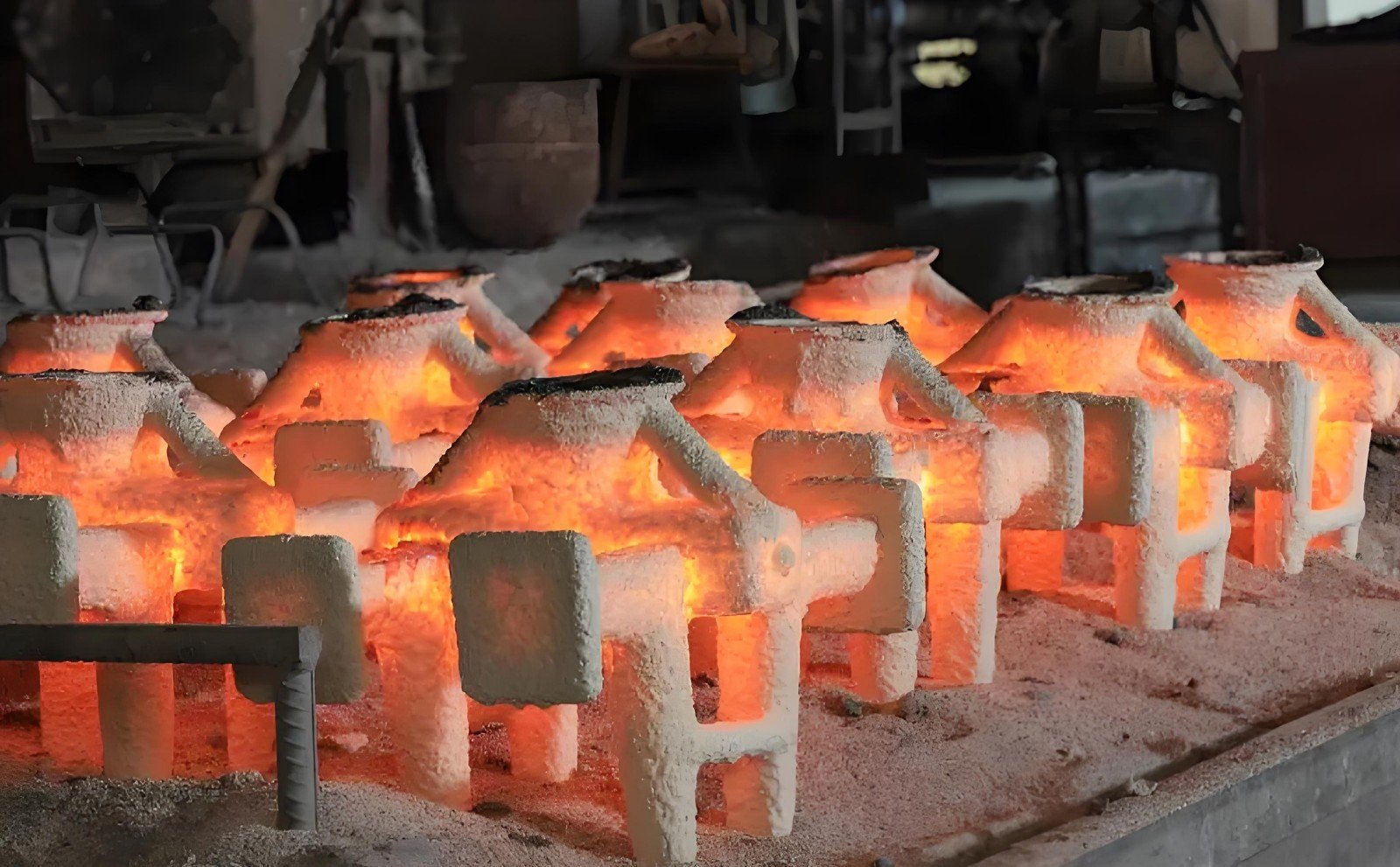 6. Pouring metal: the sintered cast mold is put into the metal furnace, heated to the melting point, and injected with metal liquid. The metal liquid is cooled and solidified in the mold to form a part with the desired shape.